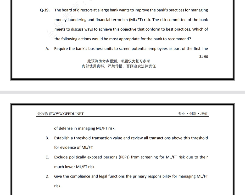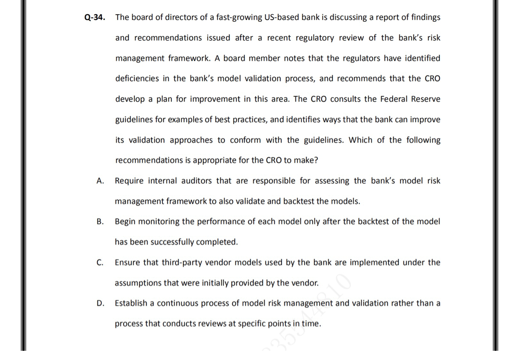 请问老师在A选项中,验证模型有效性不是board做吗?为什么是内部审计做呢?或者说模型的验证是谁负责呢?还有C选项为什么错了?