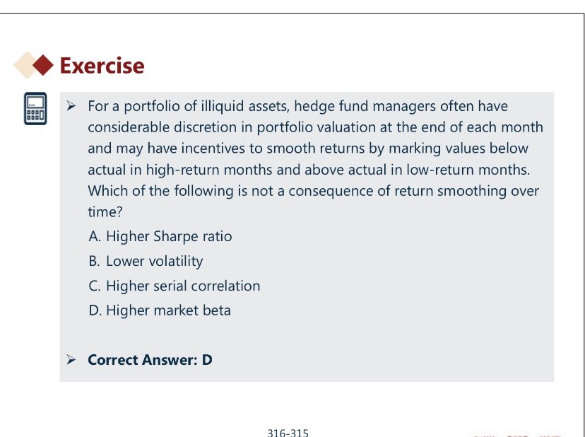 想问一下这题的解析?以及对于C,根据课程讲的smoothing会导致低估风险相关指标,包括低估相关系数,这里为什么又说序列相关性会被高估呢?