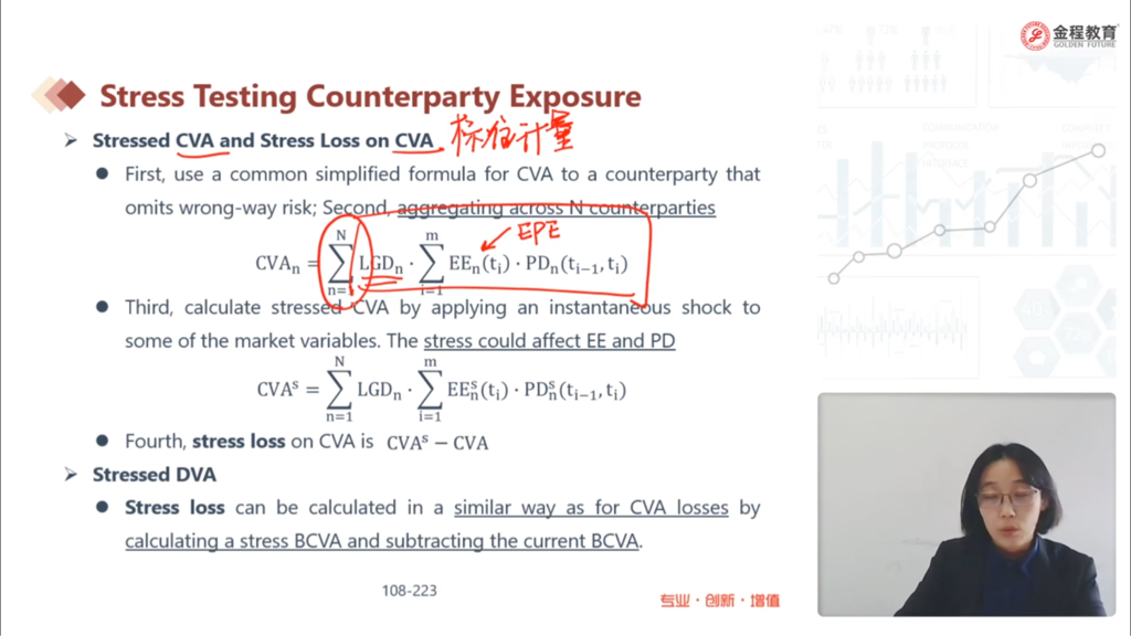 108页老师讲的对预期损失做压力测试不尽合理因为是对当前的估计而非对未来的估计,所以要用cva。不理解。cva不也是用的EPE,107页也是呀