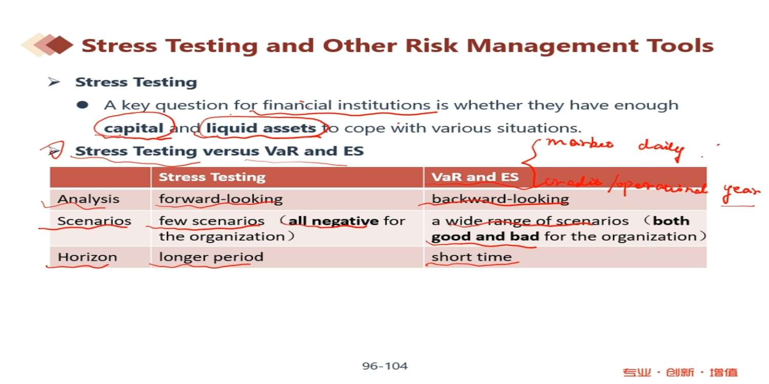 老师,这个地方horizon的比较,VaR和ES说信用风险的周期是一年,而压力测试多的弗兰克法写的是九个月,那这怎么比?9个月<1年?我不理解老师举的例子