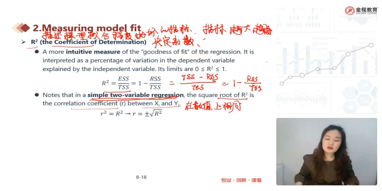 这个x解释多少y为什么看的是 r方 而不是相关系数ρ呢 之前不是说r方是等式右边整体解释y的部分吗