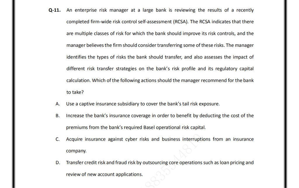 老师,D 项中外包是不是不能把风险转移出去?还有B项再解释一下
