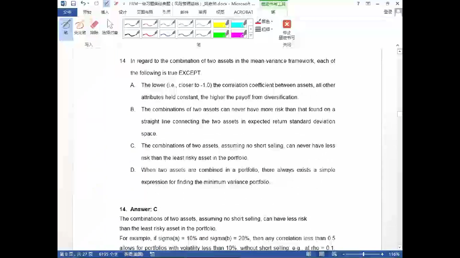 - 请问,求组合标准差需要乘以权重,但是组合var,不需要权重,想不明白?麻烦仔细讲下