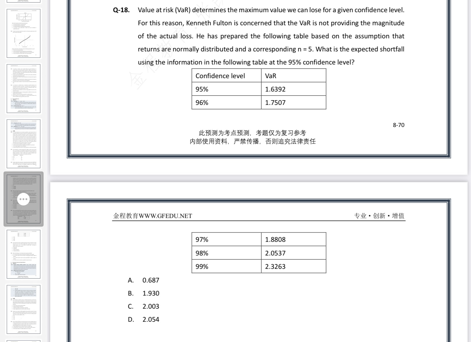 老师,这道题如果题目没有说n=5,那么计算ES时是否需要加上95%VaR对应的值,再除以5呢?