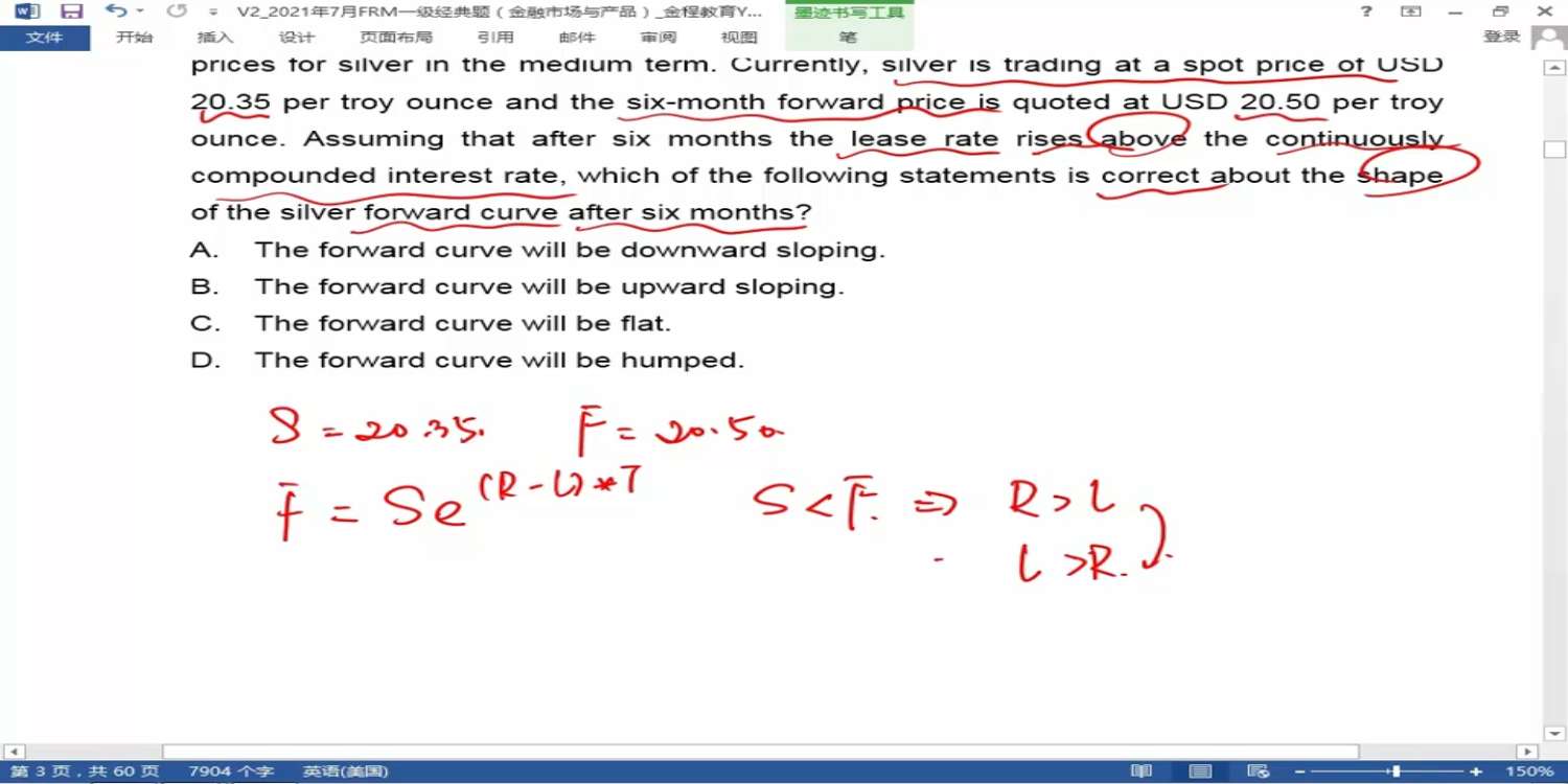 请问为什么S<F,就知道R>L了?我理解的是S<F,那么e^(R-L)*T就应该小于1,则R-L<0,R<L