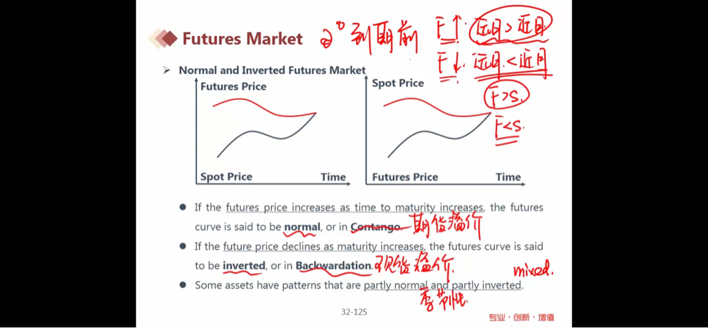 講解上是明白意思。例如石油有storage cost正常F>S , 石油產量急降connivence cost急升便會F<S。 但視頻內的圖表那個是contango 那個是 backwardation?