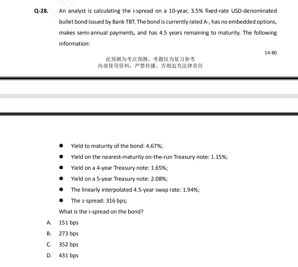 老师,这道题中的i spread是什么意思,还有linearly interpolated swap rate也不懂