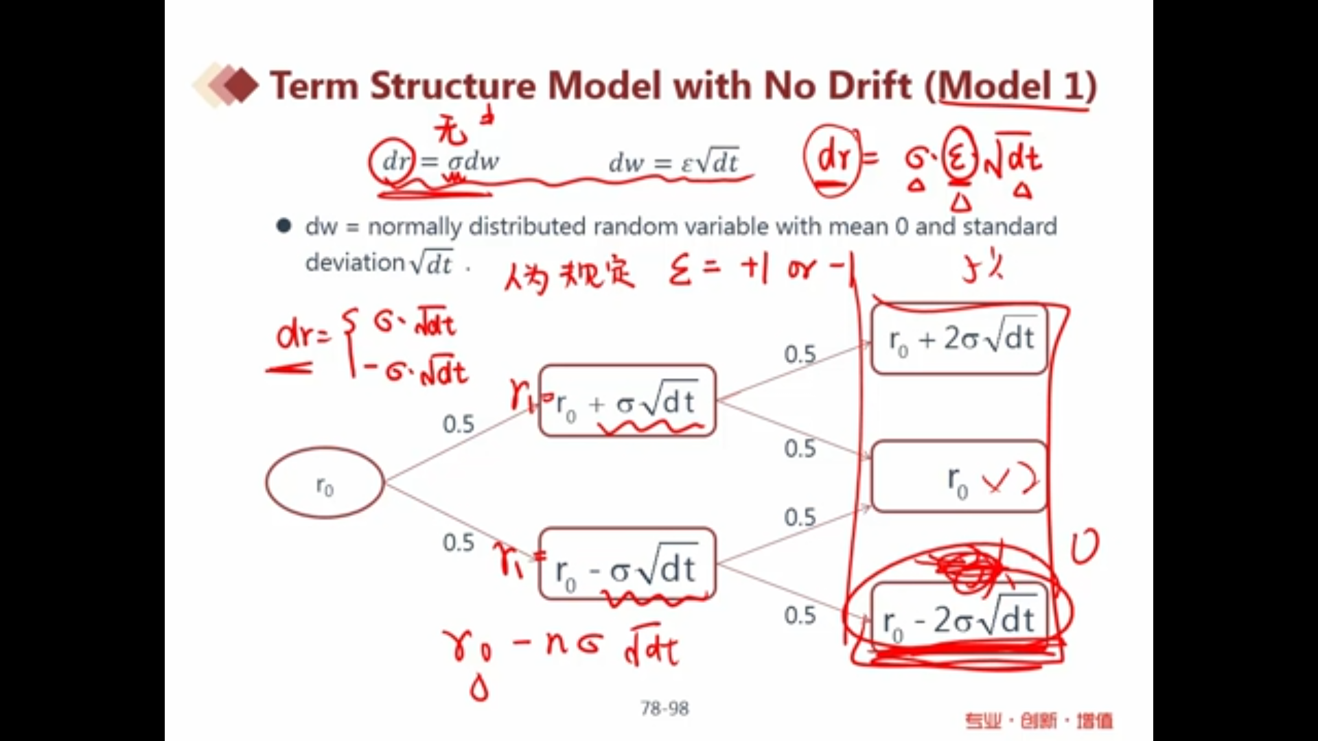 老师,解决方法1是令ξ服从对数正态分布,那么ξ的取值只能是正值,从而无负利率。可ξ不是已经人为规定,有两种可能,可以=-1吗?这一遍说只能取正值,一遍说=-1,不矛盾吗?
