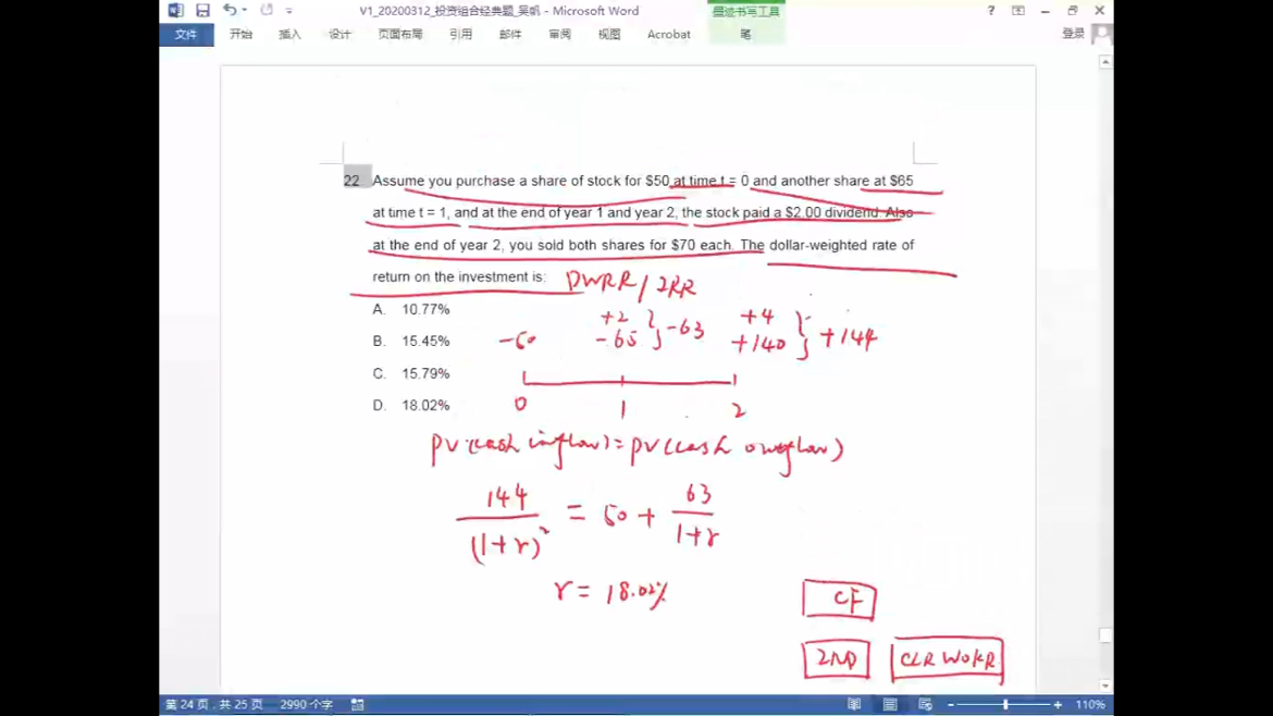 这个我按计算器得到的数字IRR=19.9323,不知道自己错在什么地方,谢谢老师。