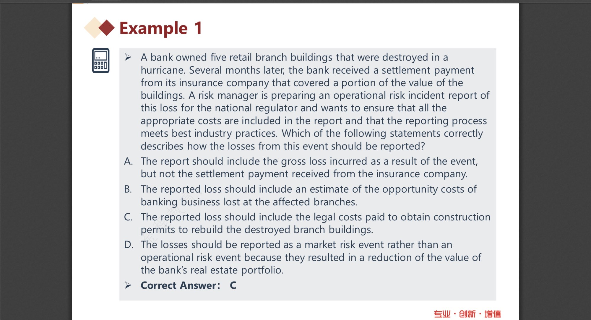 - 不理解这里为什么Risk Chaampions & Business-Line Managers 负责monitor Operational Risk Function Operational Risk Committee 负责act 难道不应该是一线业务人员负责act,然后上一级负责monitor更贴切嘛