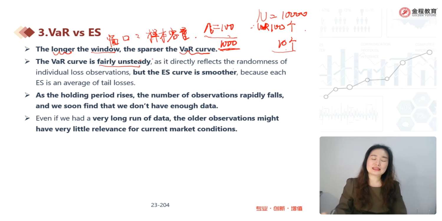 窗口期越长,VaR曲线变得越稀疏。这在图中是怎么体现的?另外,VaR稀疏能说明什么?