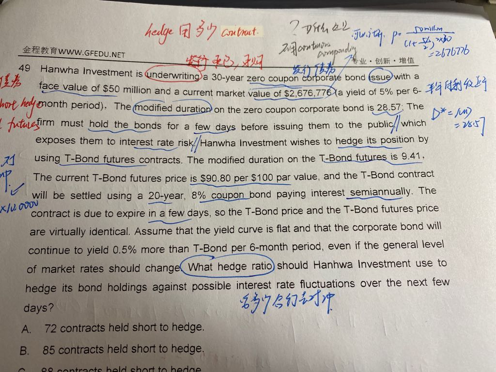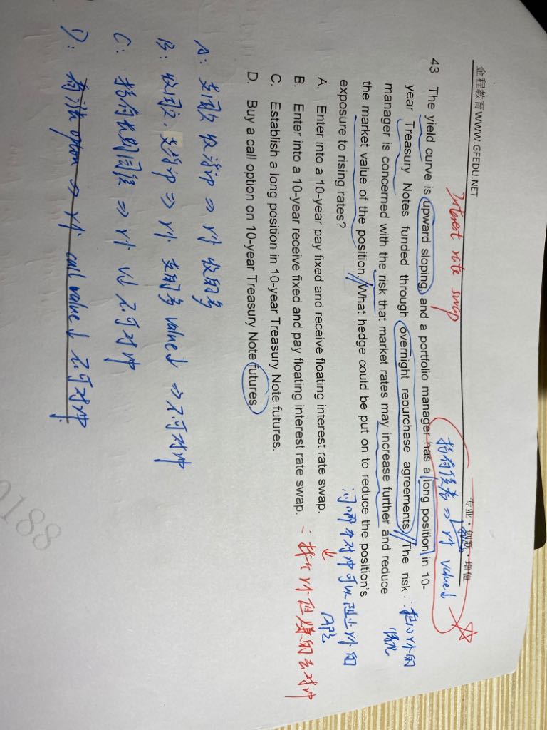 43题,D为什么不对,买入看涨期权,利率上升,call option value升高啊?(见图二)为什么不能对冲?