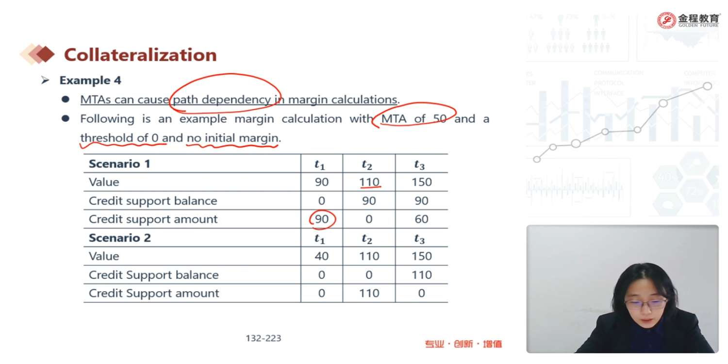 132页的案例4中,情景1的t2到t3只增加了40,低于MTA,为什么要交保证金。然后情景2里t2到t3也是增加40,为什么又不要保证金了