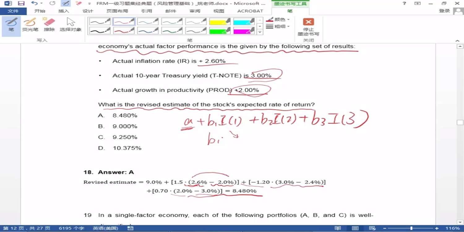 请问第18题,1.为什么要这么列式子呢?为什么a1是expected-return,i是超额部分呢?2.怎么想到是APT模型的呢?APT模型怎么和这个有关呢?