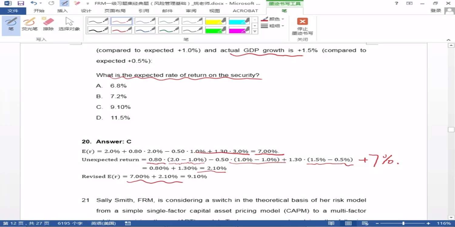 第20题的7%是怎么算出来的,原来的expected-return的公式是什么(通式)?
