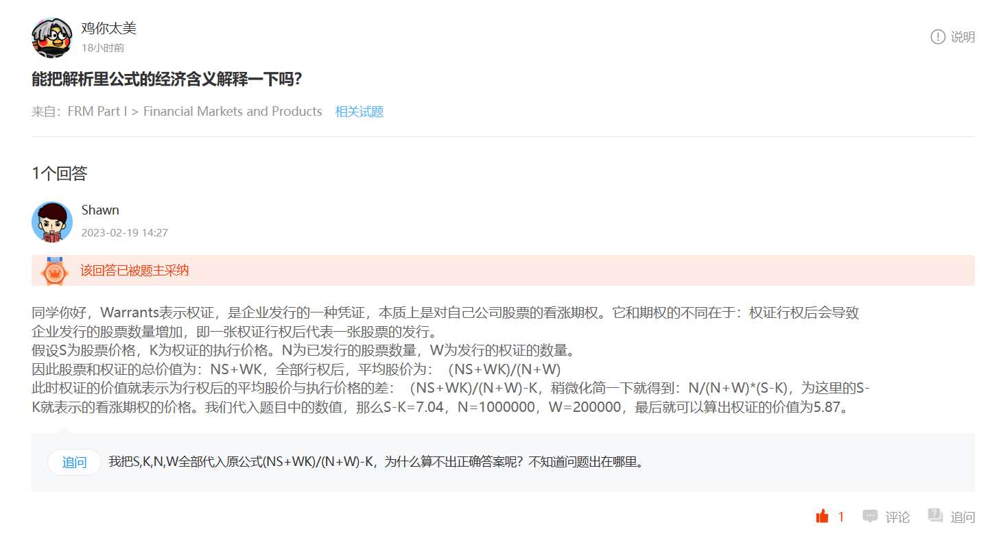 FRM问答包含在线课程、FMR通关课程、FRM试题等所有FRM相关问题,每个问题老师均会在24小时内给出答疑回复哦!