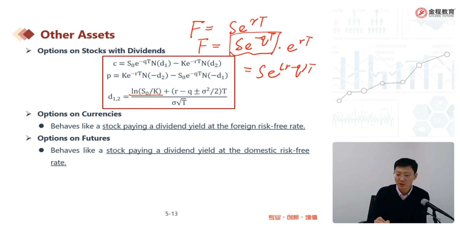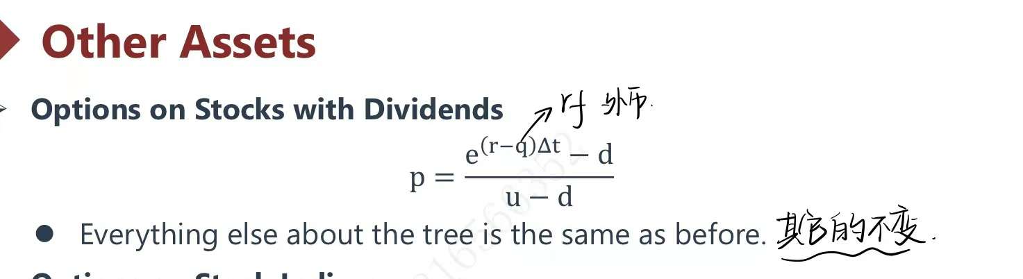 老师,如果分红会导致怎样的结果?使得原始式子变成Se^(-rT)?为什么这个计算的时候所有的S都会变化,而前面二叉树模型的时候如果有分红只会引起p的变化?这个p改变的推导过程能讲一下吗?