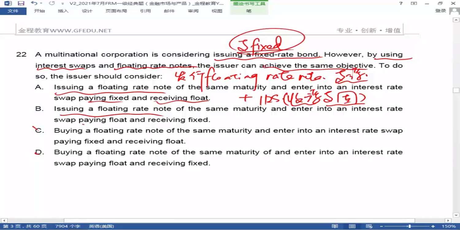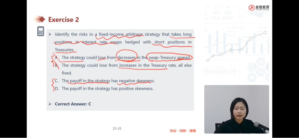这里老师讲解A选项时,互换和国债利差为什么只考虑互换利率下降的情况,不考虑上升的情况?