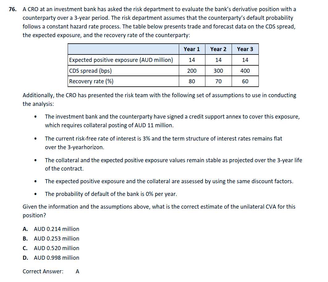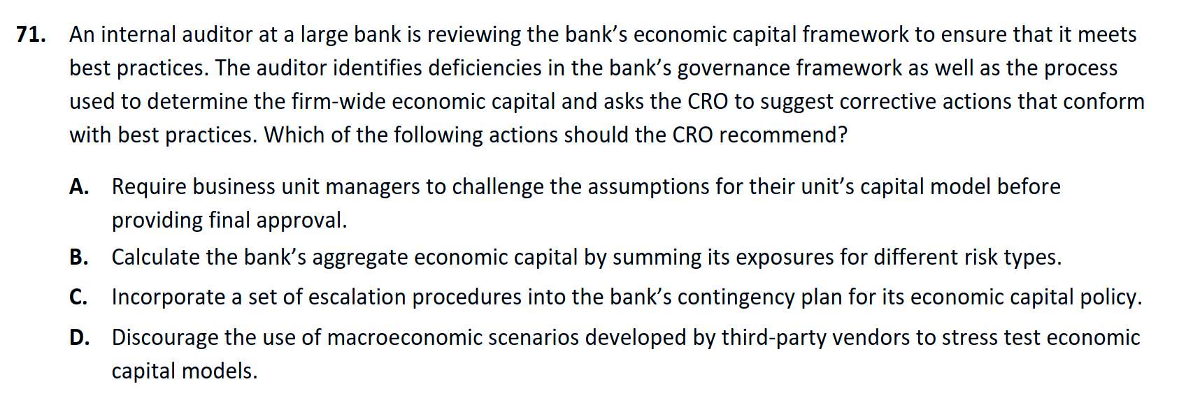 官网习题,对于B的解释是过于保守,但是在实际basel资本要求计算的时候,不就是这么操作的吗,并不考虑分散化风险?