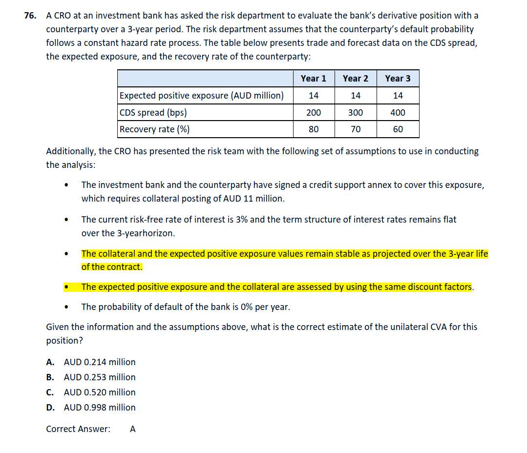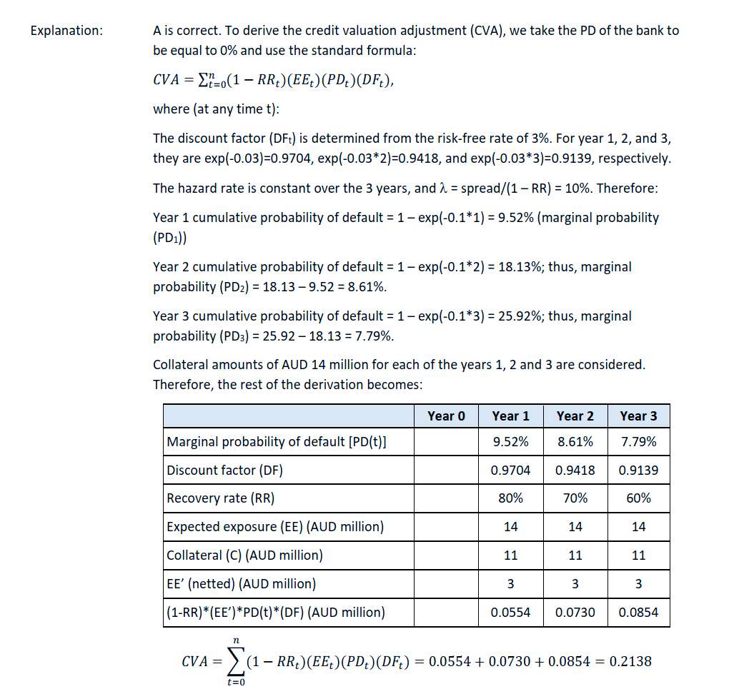 官网习题,解答部分按每年计算当年的违约率,再计算CVA,如果是这个算法,那么EE也应该每年发生变化,如果第一年已经违约的部分,是不是应该从EE中扣除,第三年的EE也要扣除前两年违约的部分?标黄色部分怎么理解?