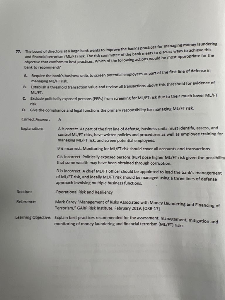- 不理解这里为什么Risk Chaampions & Business-Line Managers 负责monitor Operational Risk Function Operational Risk Committee 负责act 难道不应该是一线业务人员负责act,然后上一级负责monitor更贴切嘛