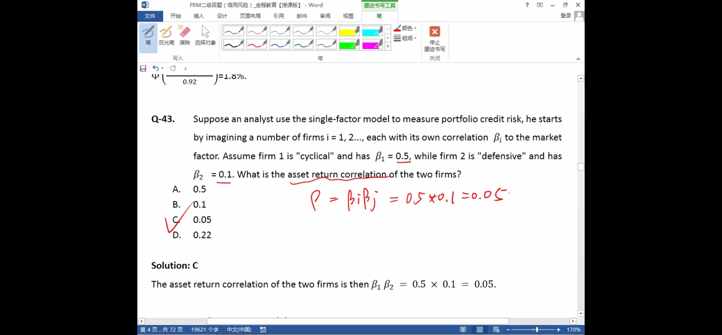 为什么相关系数等于两个变量与market factor的相关系数的乘积?