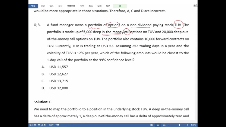 老师,这道题给出了LGD是100%是否可以认为一旦发生违约他的var就是100呢?因此不论是是在95%还是99%的水平下他的var都是100