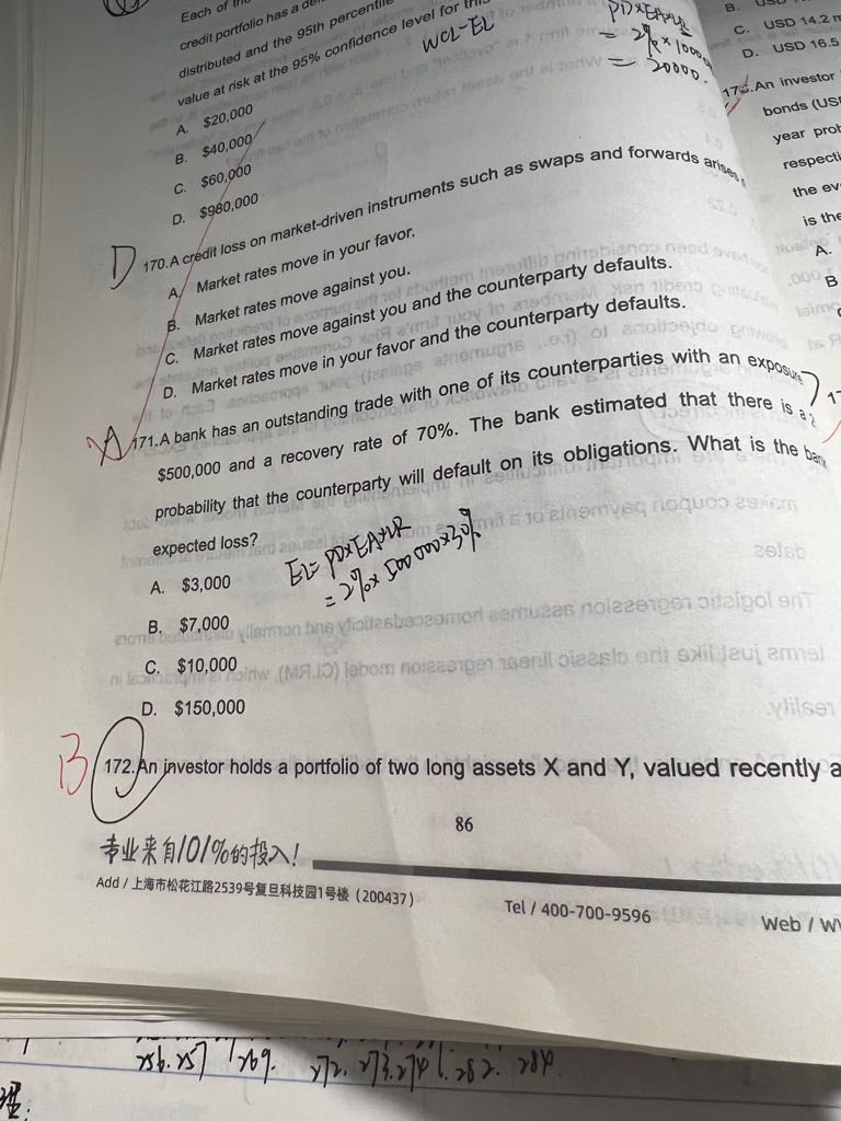 关于选项c,之前好像有道类似的题,说是因为是证券化产品还是什么,所以不能是Trading book而是bankbook,这边期间是一年,作为trading book会不会太长。