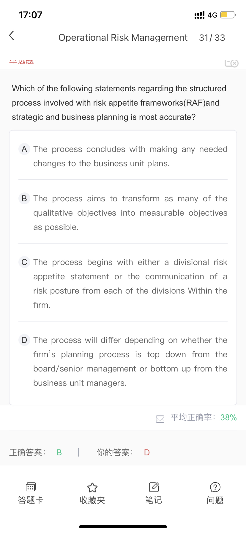 - 不理解这里为什么Risk Chaampions & Business-Line Managers 负责monitor Operational Risk Function Operational Risk Committee 负责act 难道不应该是一线业务人员负责act,然后上一级负责monitor更贴切嘛