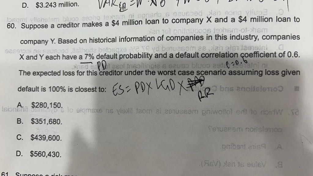 请问这两道题为啥一个要考虑违约概率相关系数,一个又不考虑?
