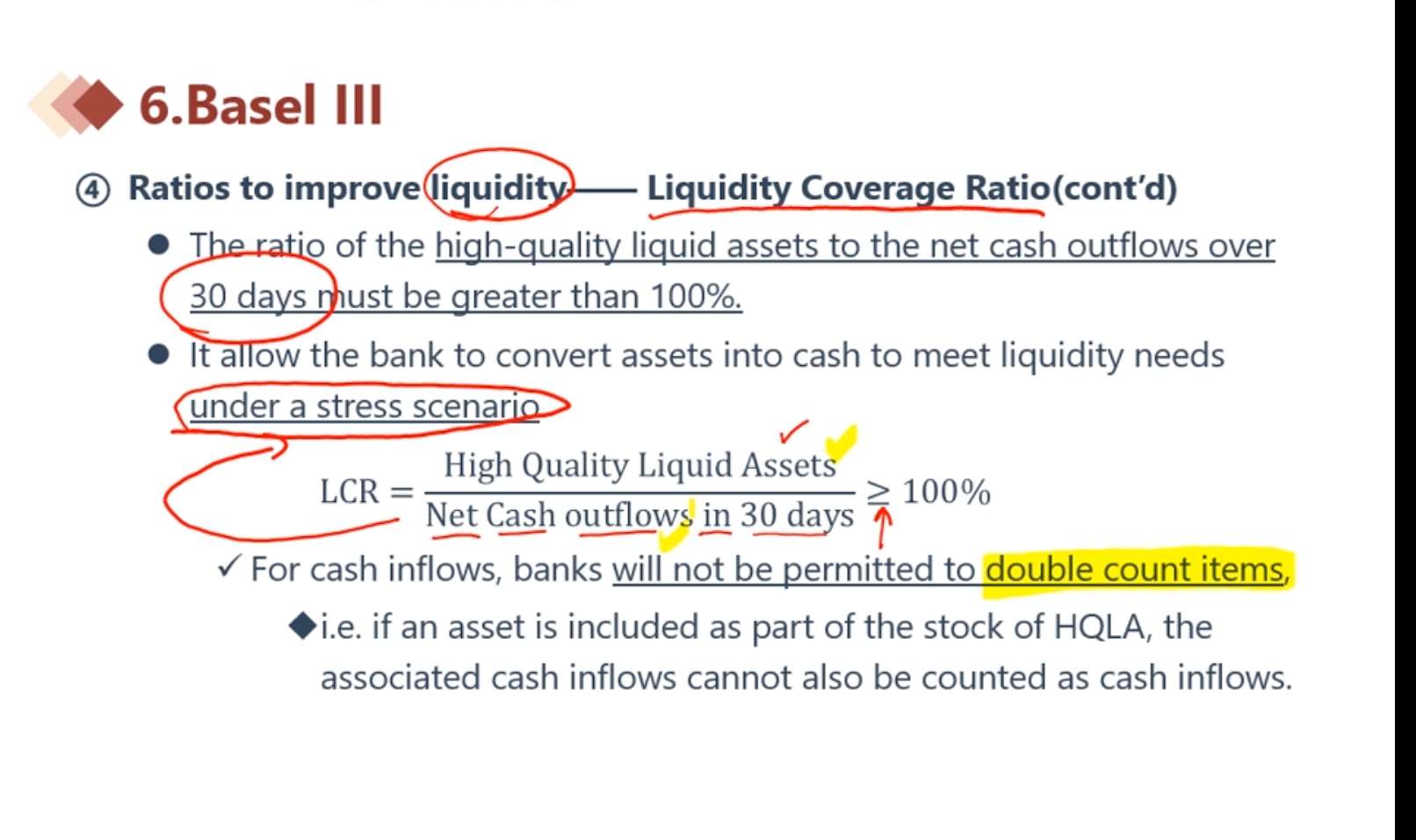 已解决讲义中讲的double,count,items,是说如果一个资产能快速转换(伴随)成现金流入(associated,cash,inflows),这个资产就不能当成现金流入再计算一次。而老师讲的的是,这个资产不能同时出现在分子和分母,这个讲法似乎和讲义的说法相去甚远。