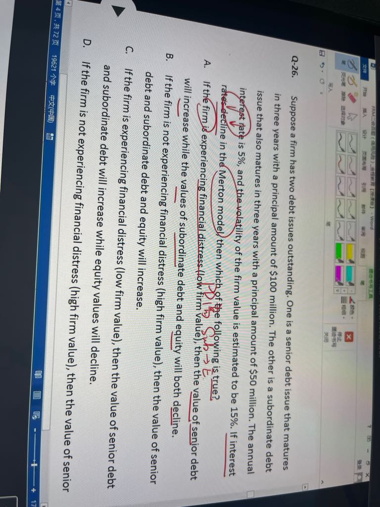 老师请问这里一级讲的利率变动对期权的价值怎么影响可以讲一下嘛?(2)这里选项中的Equity是CDO分层之后的,还是所有者权益呀?讲解时候是两者都是,这是为什么呀?