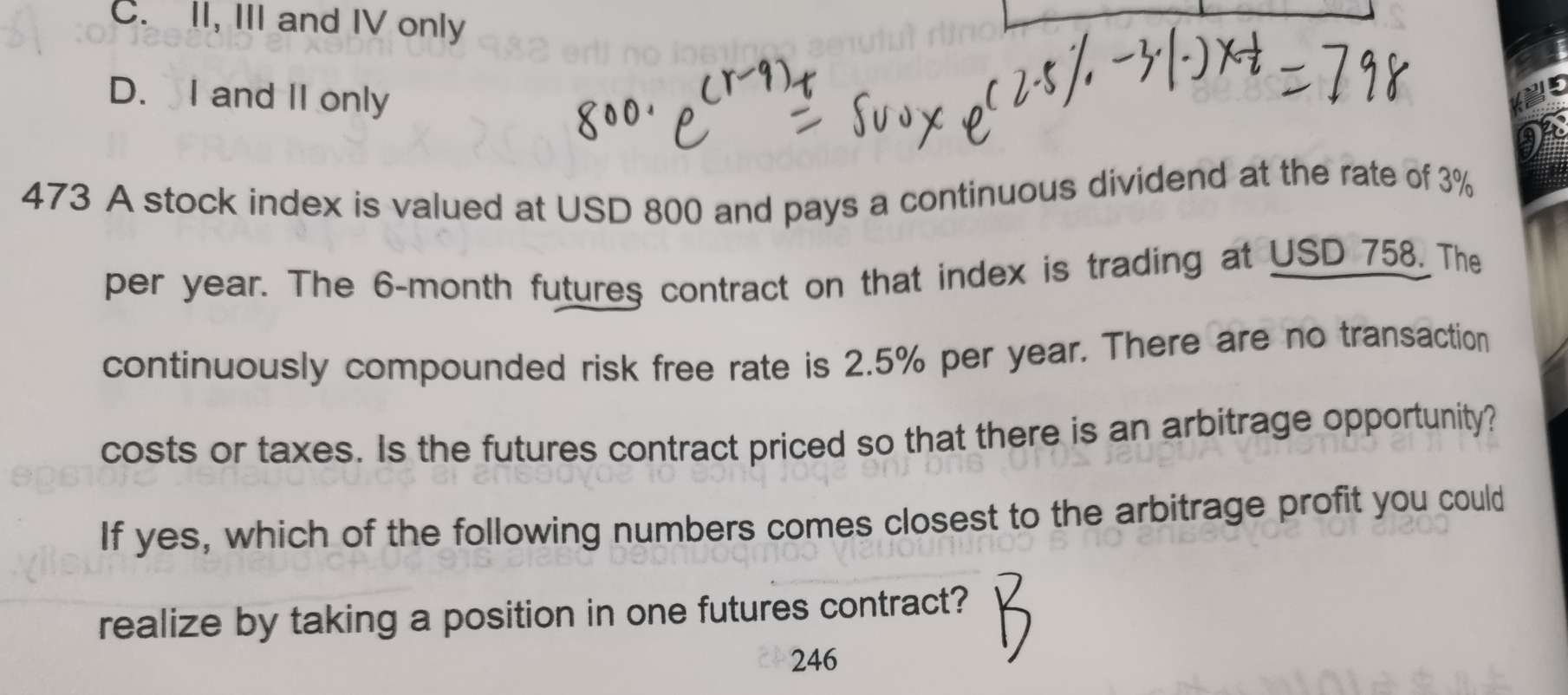 老师,473我算出来,但有点晕了。现价800,futures是6个月758,现价等于6个月798,那差价40要不要再6个月折现到现在时点呢