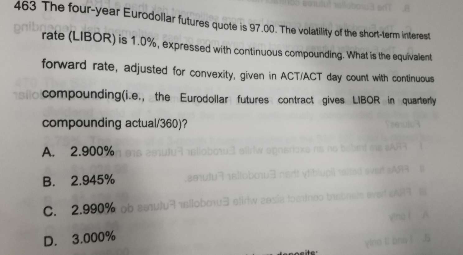 老师好,请问能否解答下此题,然后说下futures,forward的凸性调整,谢谢