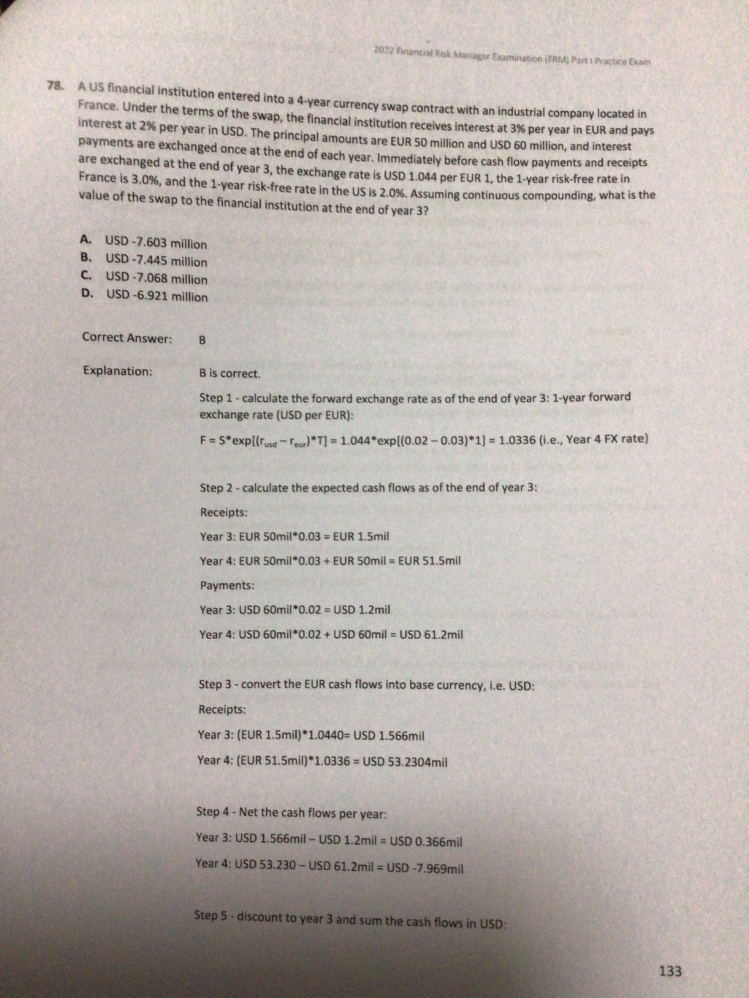 老師你好,這一題不明白為什麼要將1.044折現?另外題目不是說計算第三年嗎?為什麼他的答案要計算到第四年?