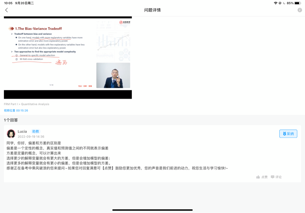 FRM问答包含在线课程、FMR通关课程、FRM试题等所有FRM相关问题,每个问题老师均会在24小时内给出答疑回复哦!