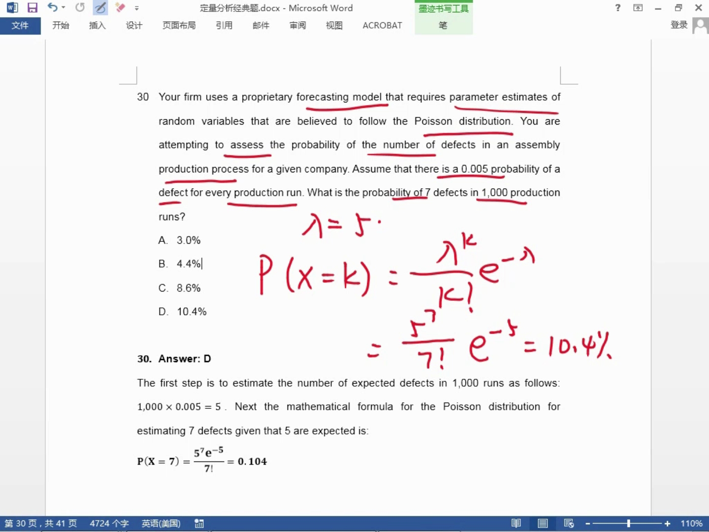 请问老师,我对比二项和泊松的适用场景,觉得这题还是用二项更贴切。我可否理解成是因为这题n很大,反正二项算出来都接近泊松,所以一般直接用泊松的概率计算式?