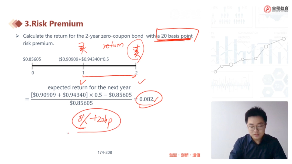 这里把2时刻的价格折现到1时刻,把1时刻的价格折现到0时刻去计算1到2时刻的预期收益率。和我直接用2时刻的价格减去1时刻的价格,然后除以1时刻的价格得到1到2时刻的预期收益率。这两种方法有什么不同,实操一般用哪种方法。请老师回答。