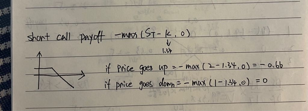 老师,这道题short call的payoff我的理解是价格越高亏的越多,假设如图,请问为什么反而是在price goes down的时候风险大呢?