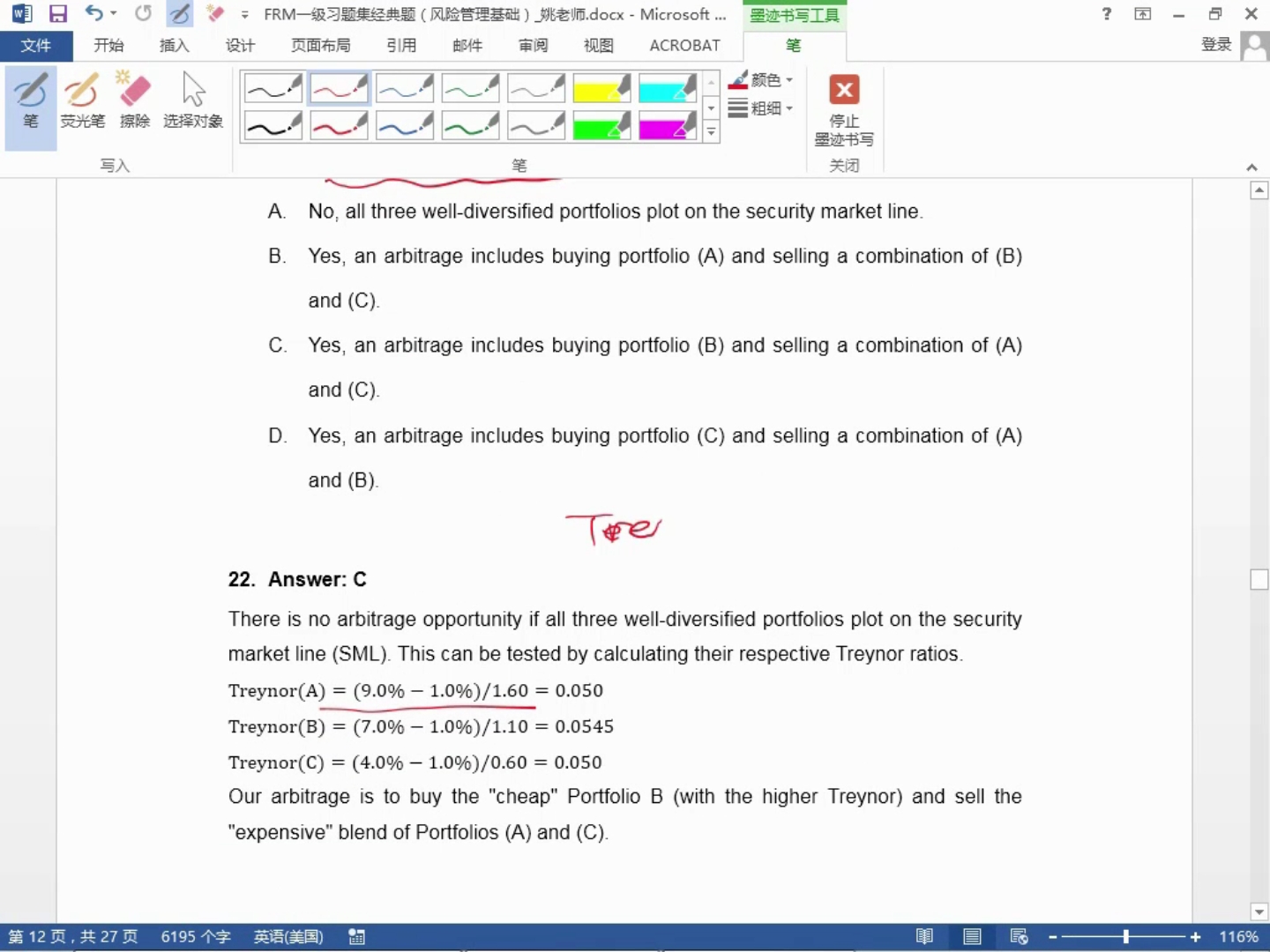 请问为什么TREYNOR RATIO越小,资产价格越贵