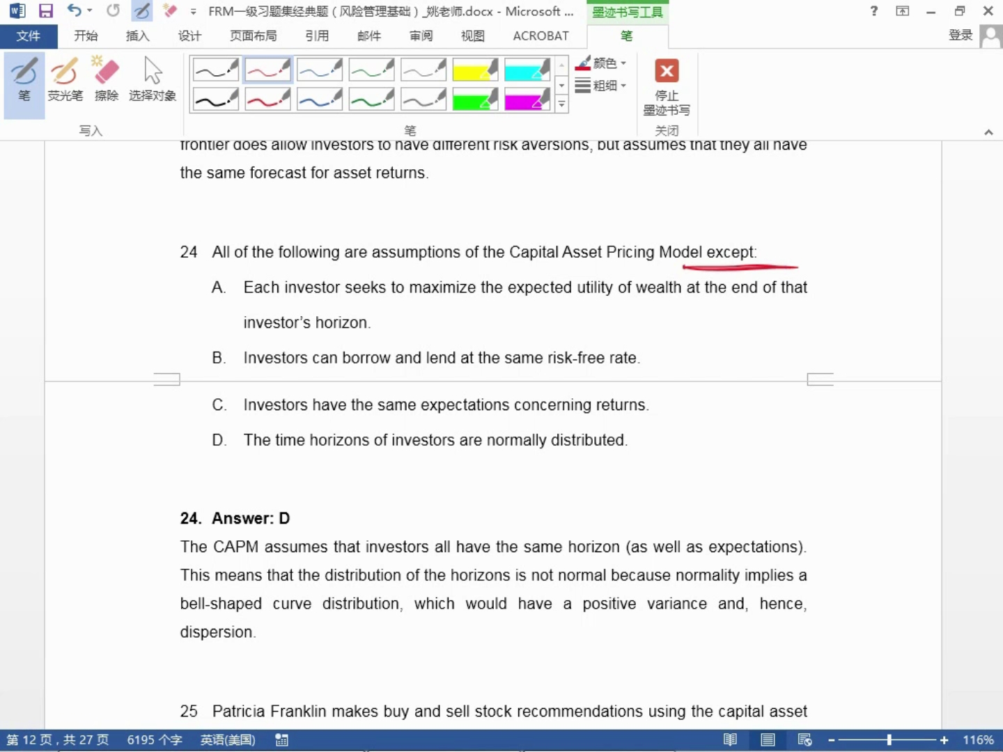 请问CAPM中的组合都应在有效前沿上吗?我读金程课本上册92页,构造CAPM时,P是任意资产组合,看起来不一定要在有效前沿;但这个模型同样假设所有投资者都是马科维茨投资者,是否又意味着P还得是CML上的点?那CML跟SML不就没有不一样了?