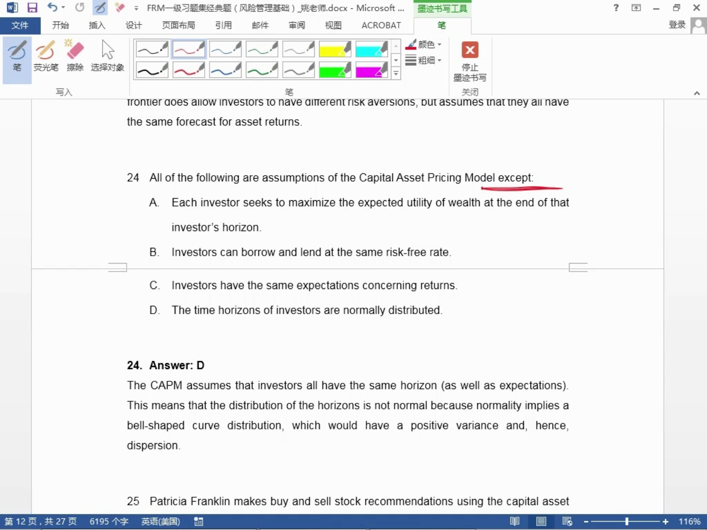CAPM的假设:投资者对收益和风险的预期一样怎么理解,是所有人的E(Rp)都符合CAPM的公式吗?