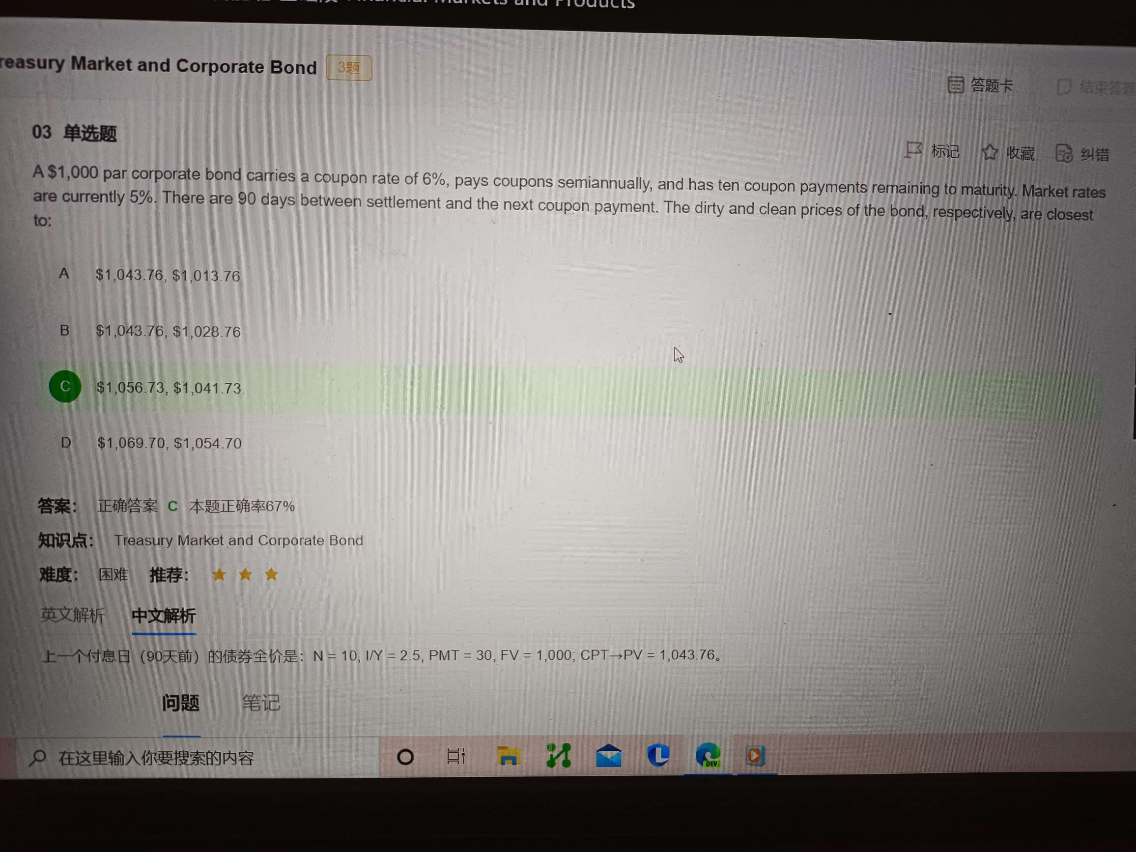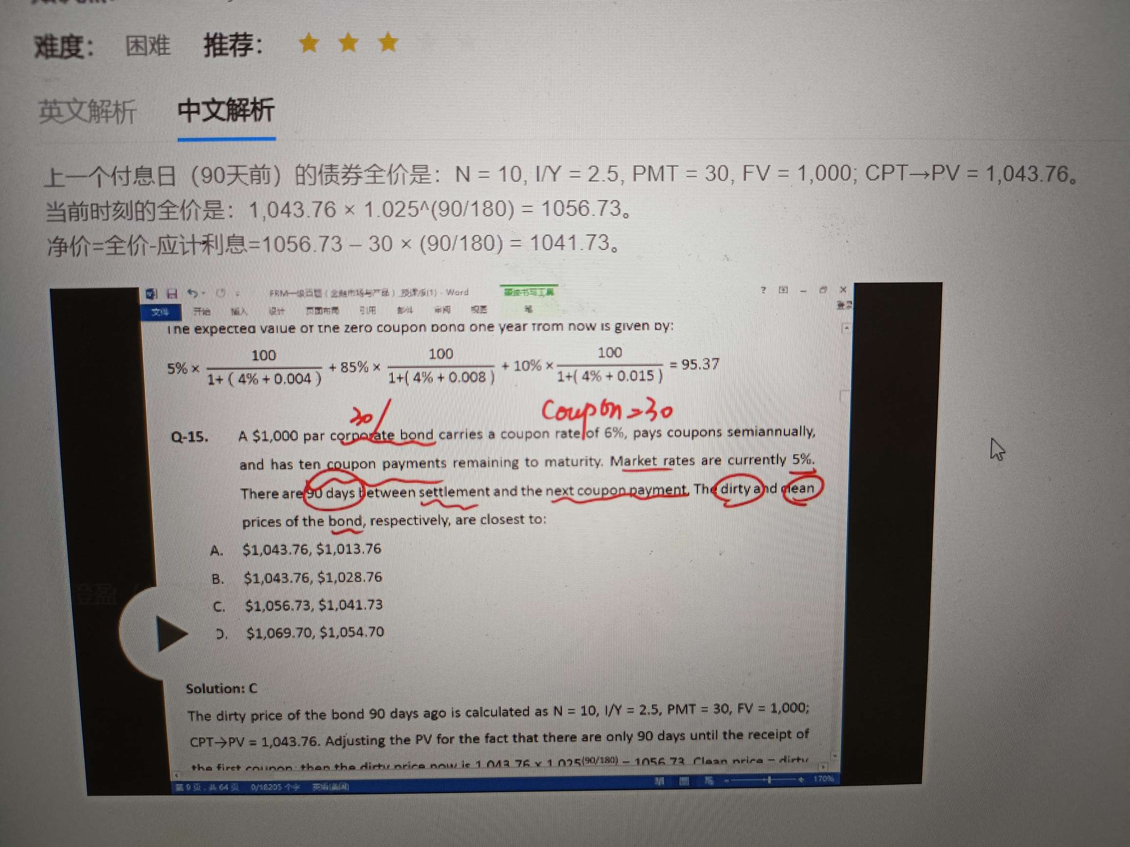 老师好,算上一个付息日的债券全价时为什么n不是9呢?这样算出来之后再加上30