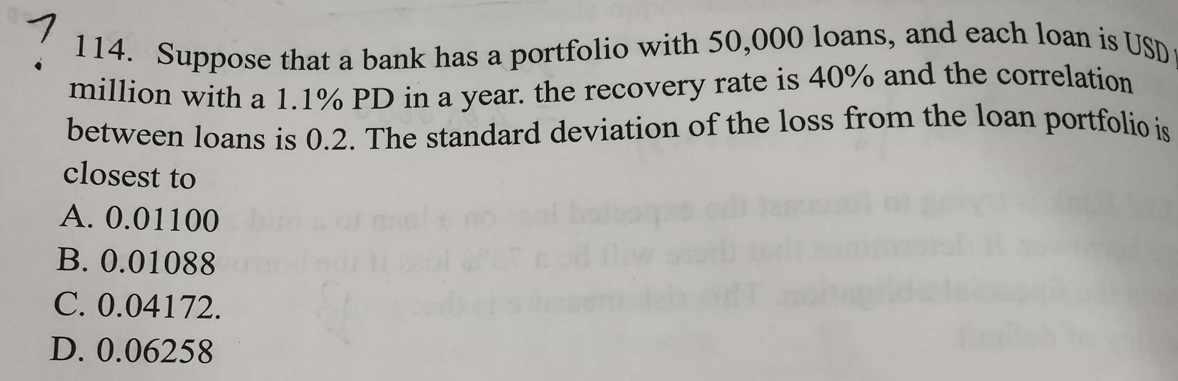 讲的JPY头寸,面值750million,pd是5%,回收率是96.5%。要求计算99.5的信用var,即UL。请问这题怎么计算?wcl是怎么求的?