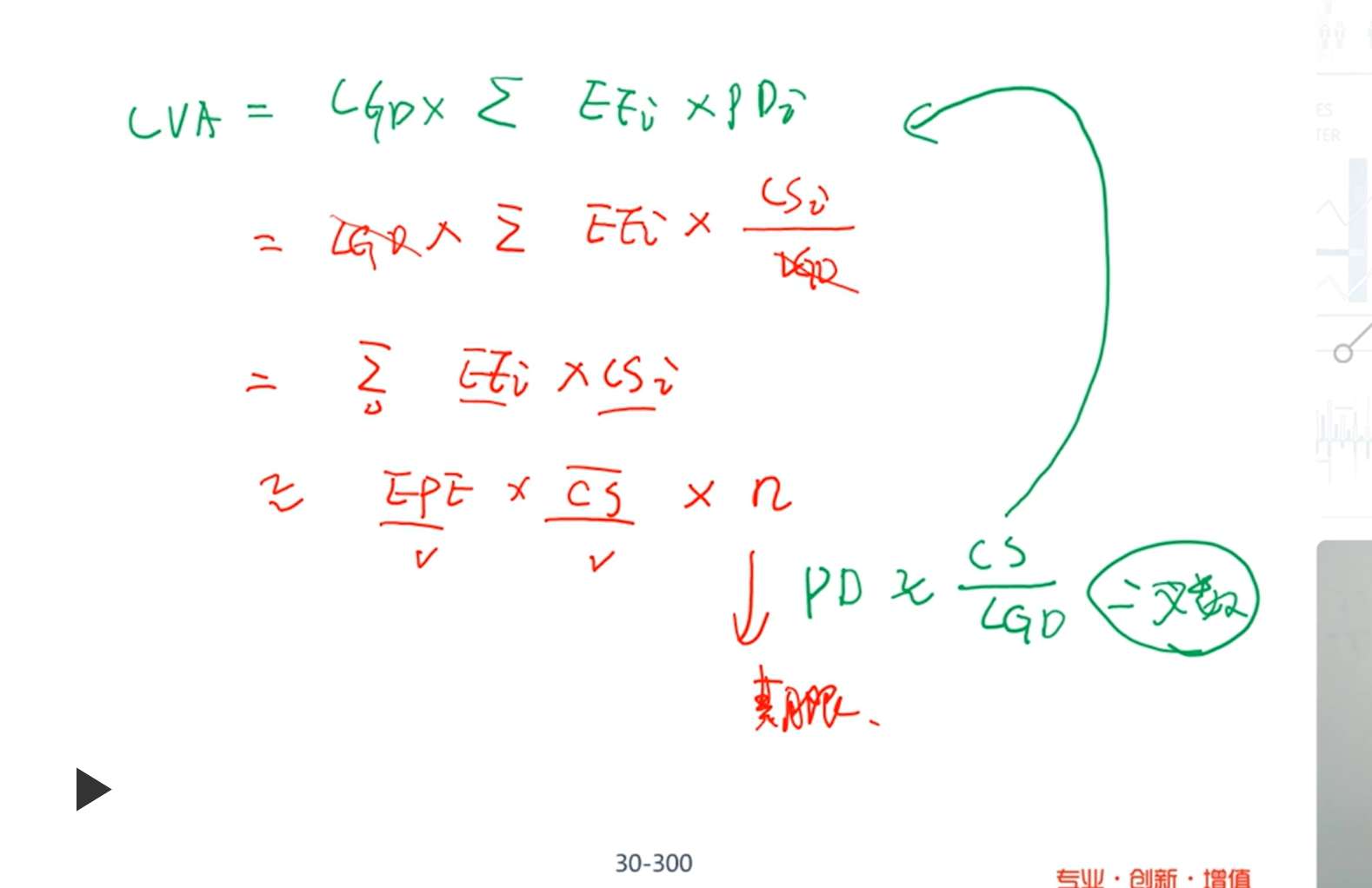 老师请问CvA公式为什么是PD,Ead相乘求和,那样的话不就相当于累计函数,数值变大很多了么,里面是否内嵌了求均值的步骤,而且这一步为什么求和之后的lgd可以和前面的约掉,但是至于一步又需要乘N