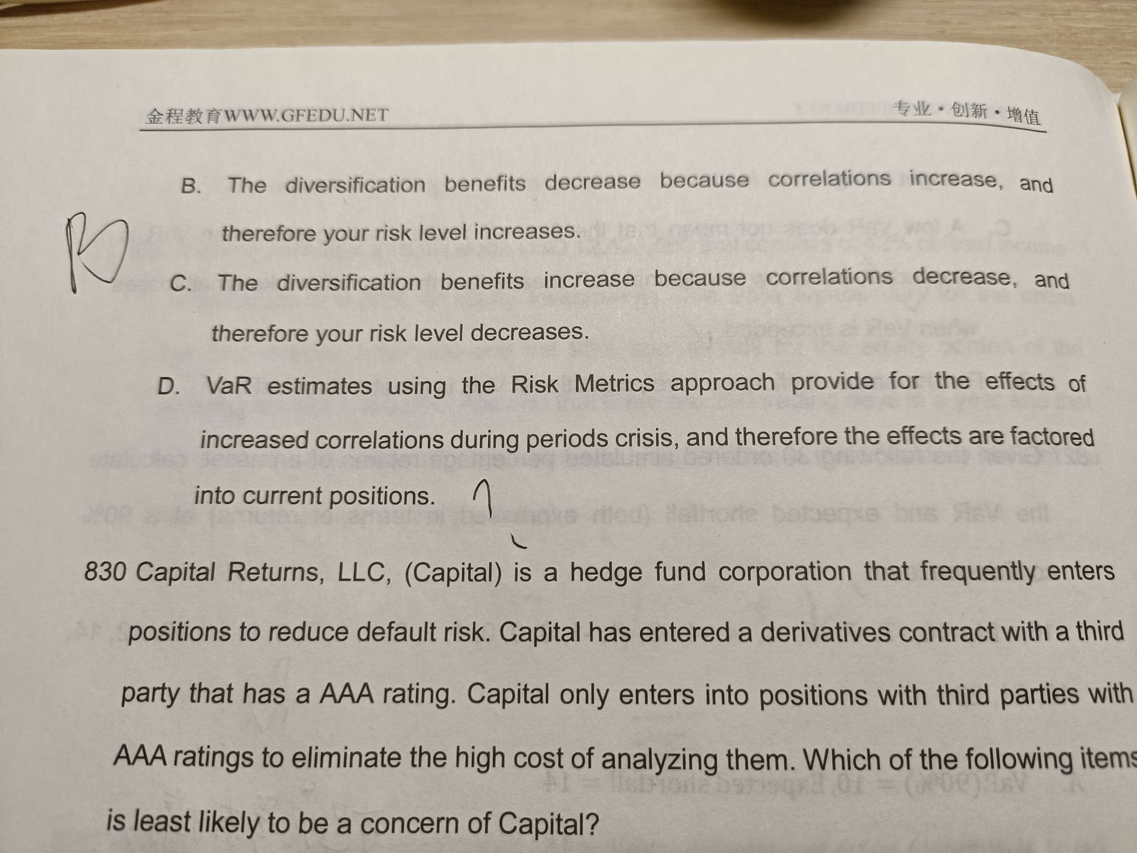 老师好,这道题是什么意思啊?risk metric哪里学过啊