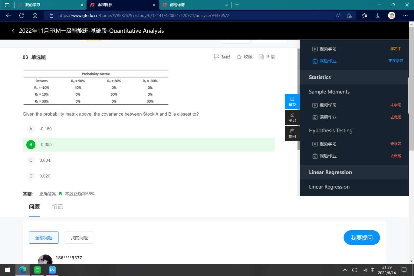 FRM问答包含在线课程、FMR通关课程、FRM试题等所有FRM相关问题,每个问题老师均会在24小时内给出答疑回复哦!