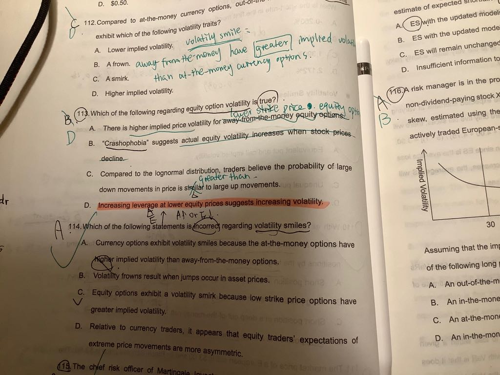 老师您好,想请问下第113题的D选项怎么理解?如果是leverage上升(A/E),要么是asset变多,要么是equity下降,那么怎么把这个和期权波动率联系起来理解呢?