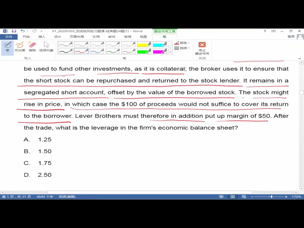 第8题有点没懂:为什么margin可能是从equity当中拿出来的 但是equity值在资产负债表中不变呢?计算leverage还是按照原来的equity来算?