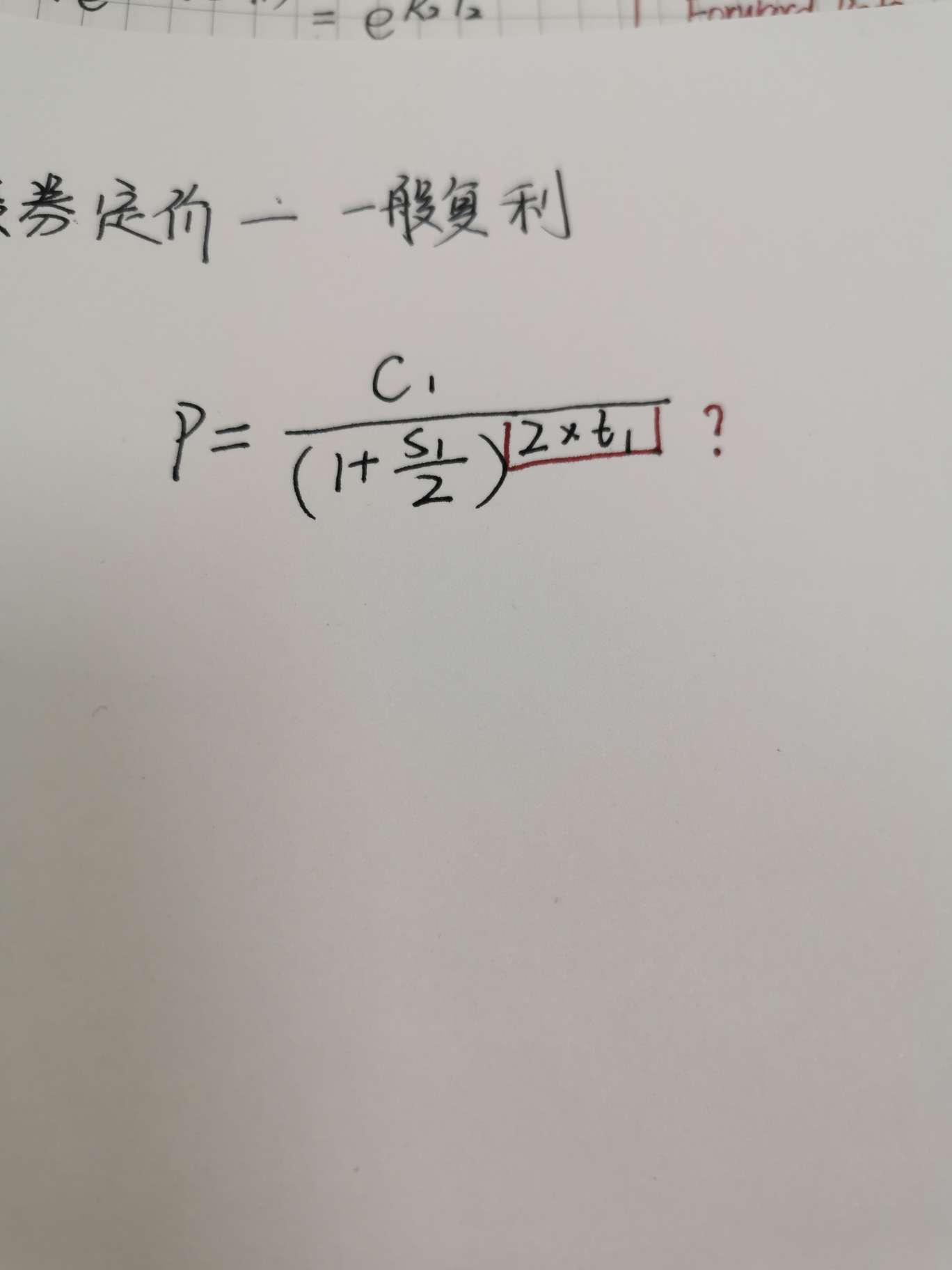 债券定价公式中 按半年复利(一般复利)的定价公式 我圈起来的这部分这样写对吗 如果不对 按半年折现的债券定价公式怎么写?